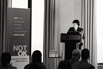 Karen Daley’s testimony asks that we look at two things, firstly how can we prevent sharps injury occurrence, and secondly… in the event of a needlestick injury, how can we support victims in seeking help and assuring them that it is going to be ok?