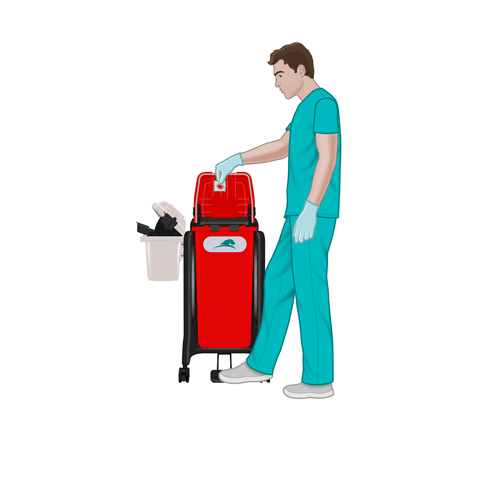 Using a bagless hands-free system means hand contact with the container and multi-handling of red bags is no longer required, significantly reducing infection transfer risk and environmental burden