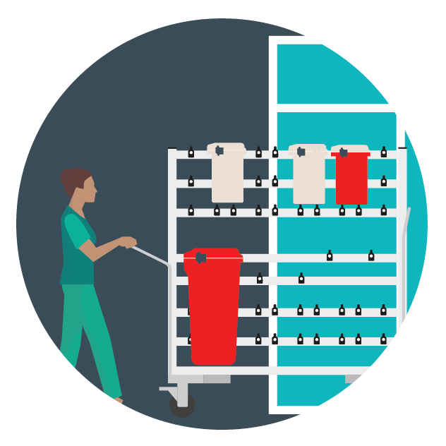 In the assessment phase, our expert field service team will walk the site to audit and blueprint specific requirements location by location, it’s important that our solutions take into account unique staffing, volume and space requirements! The data collected from our ward walks (including onsite logistics, internal and external storage, waste volumes and portering resource availability) will be analyzed to identify safety and efficiency opportunities and design a bespoke ‘best-fit’ working plan prior to installation.