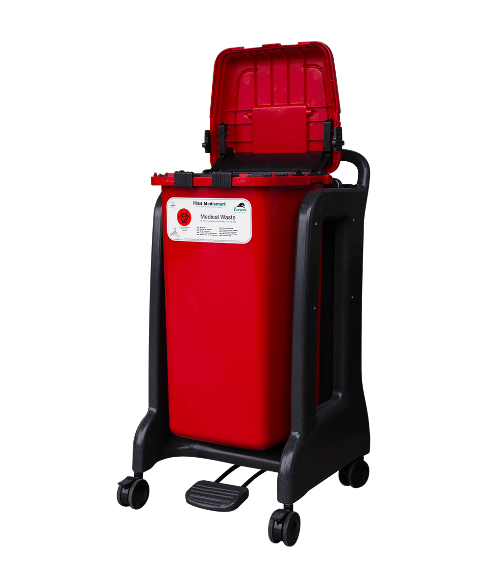 Daniels’ uniquely designed medical waste bin leads a new standard of infection control in medical waste disposal. Designed for the containment of regulated medical waste, this container is suitable for areas that generate a moderate to high volume of red bag waste. Wide range of trolleys and mounting accessories available. Linerless container proven to increase segregation, drive medical waste disposal cost reductions and achieve a strong environmental outcome with the elimination of plastic bags.