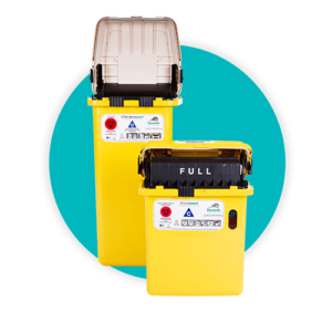 Designed as a point-of-use sharps solution, the Daniels M64 + S22 + Accessmart combo enables dual hands-free disposal with reduced footprint. With regulated medical waste deposited into the M64, the co-mounted S22 captures smaller needles and finer syringes
