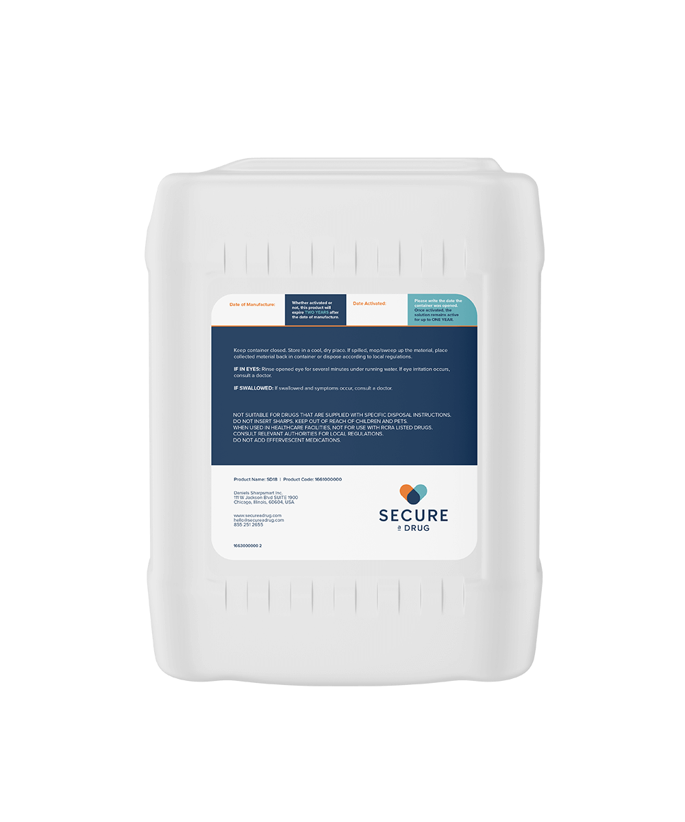 An easy and responsible way to dispose of DEA controlled substances that renders them safe and irretrievable. The SD18’s activated carbon-based formulation neutralizes pharmaceuticals in just three simple steps; absorbing on contact and achieving 99.99% drug deactivation after 24 hours.