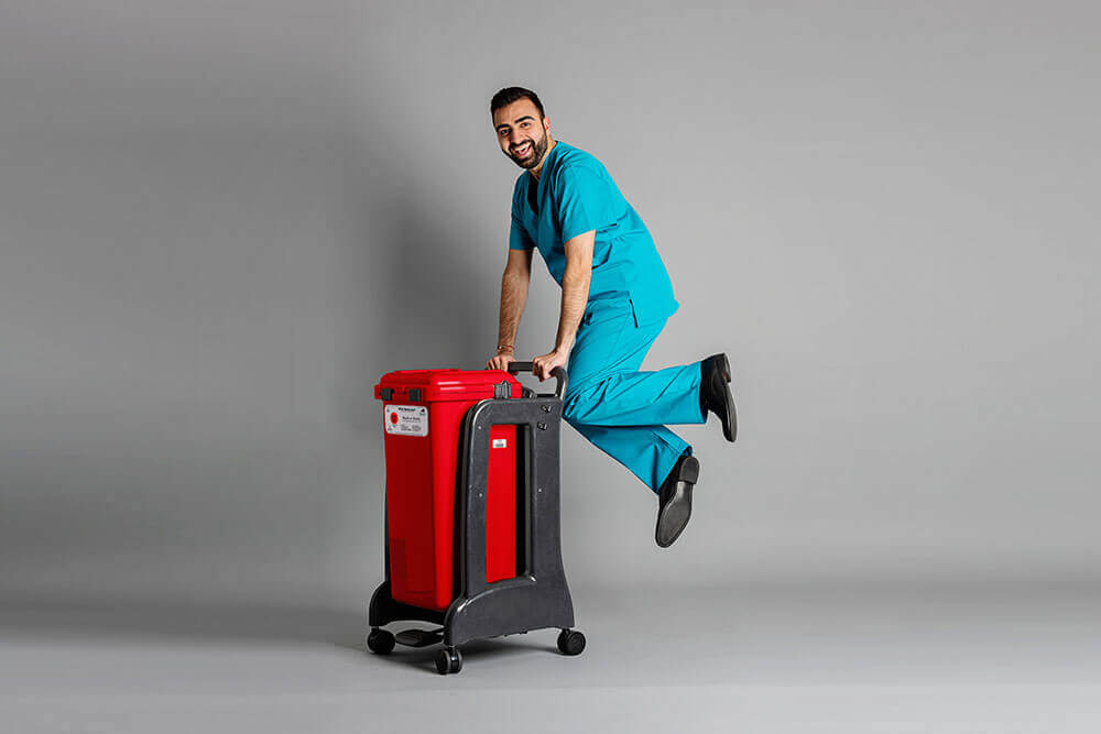 This is just the start of its life cycle… Let us take you on a journey of what happens to a Daniels Sharpsmart container from the moment we drop it off at your hospital dock right through to its robotic emptying and washing process. It’s a fascinating adventure our little containers have – where they’re mounted, how they’re moved, and who interacts with them daily.