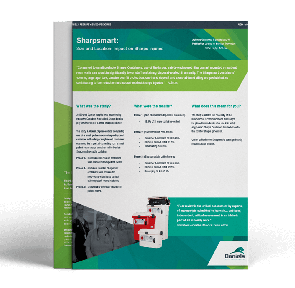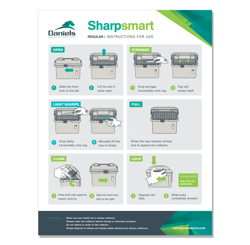 Peer reviewed in four independent studies, clinically proven to reduce needlestick Injuries by up to 87%, and relied on by healthcare facilities around the world, the Sharpsmart system is driven by a single objective – To Save Lives. Designed with 13 safety features, manufactured with needle-impenetrable plastic, a gravity-balanced safety tray for risk-free sharps disposal, and a built-in overfill protection mechanism, the Daniels Sharpsmart is the most advanced sharps container system in the world.