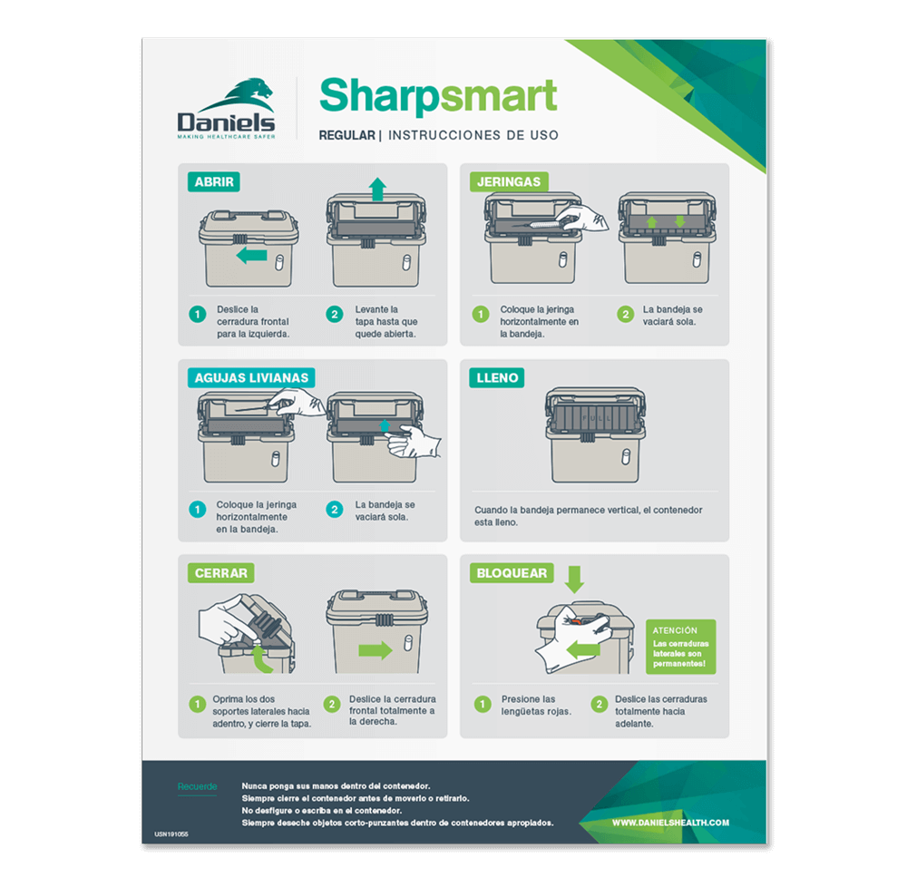 Daniels sharps containers are reusable! This poster clearly articulates why Sharpsmart collectors should never be disposed of in RMW bins.